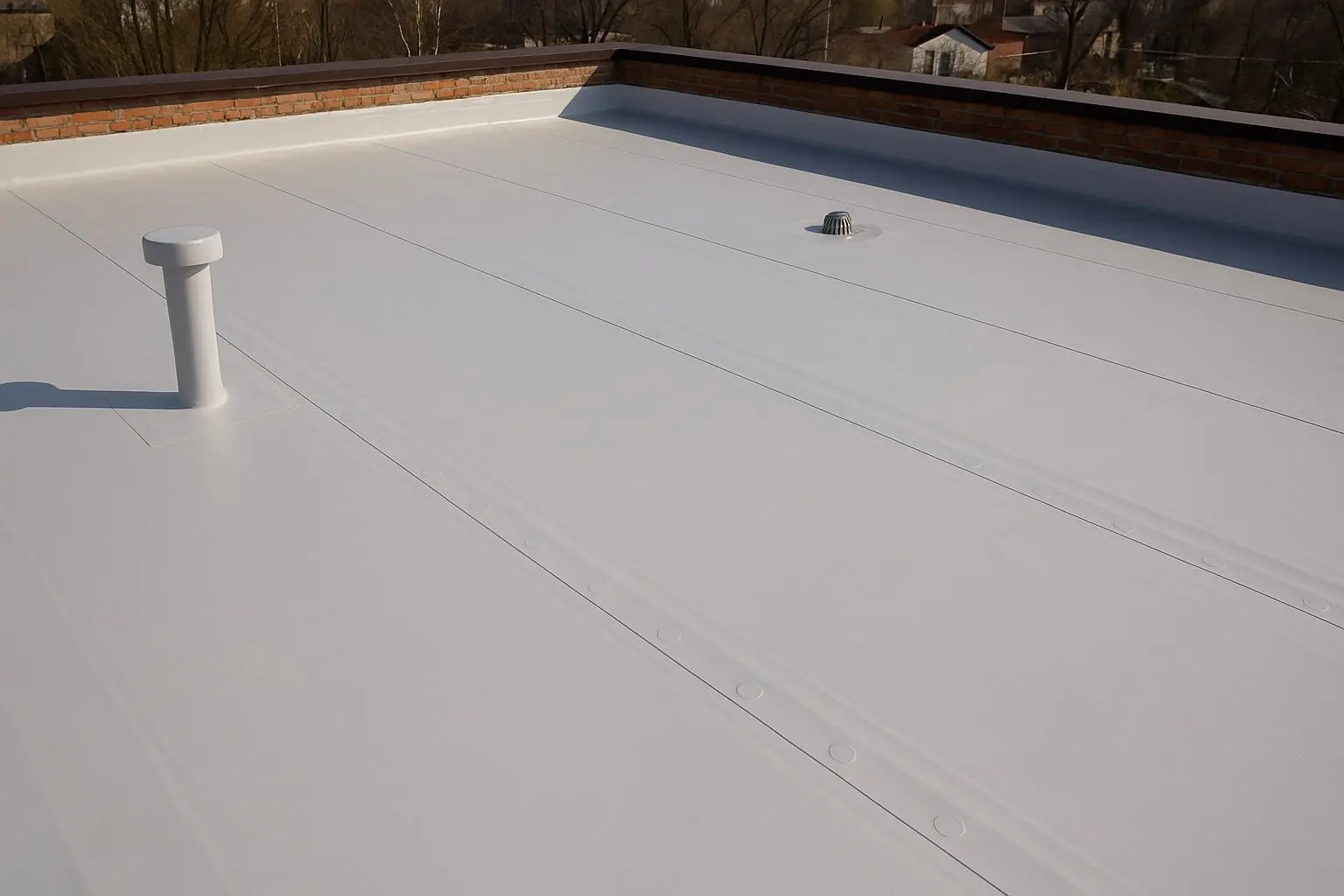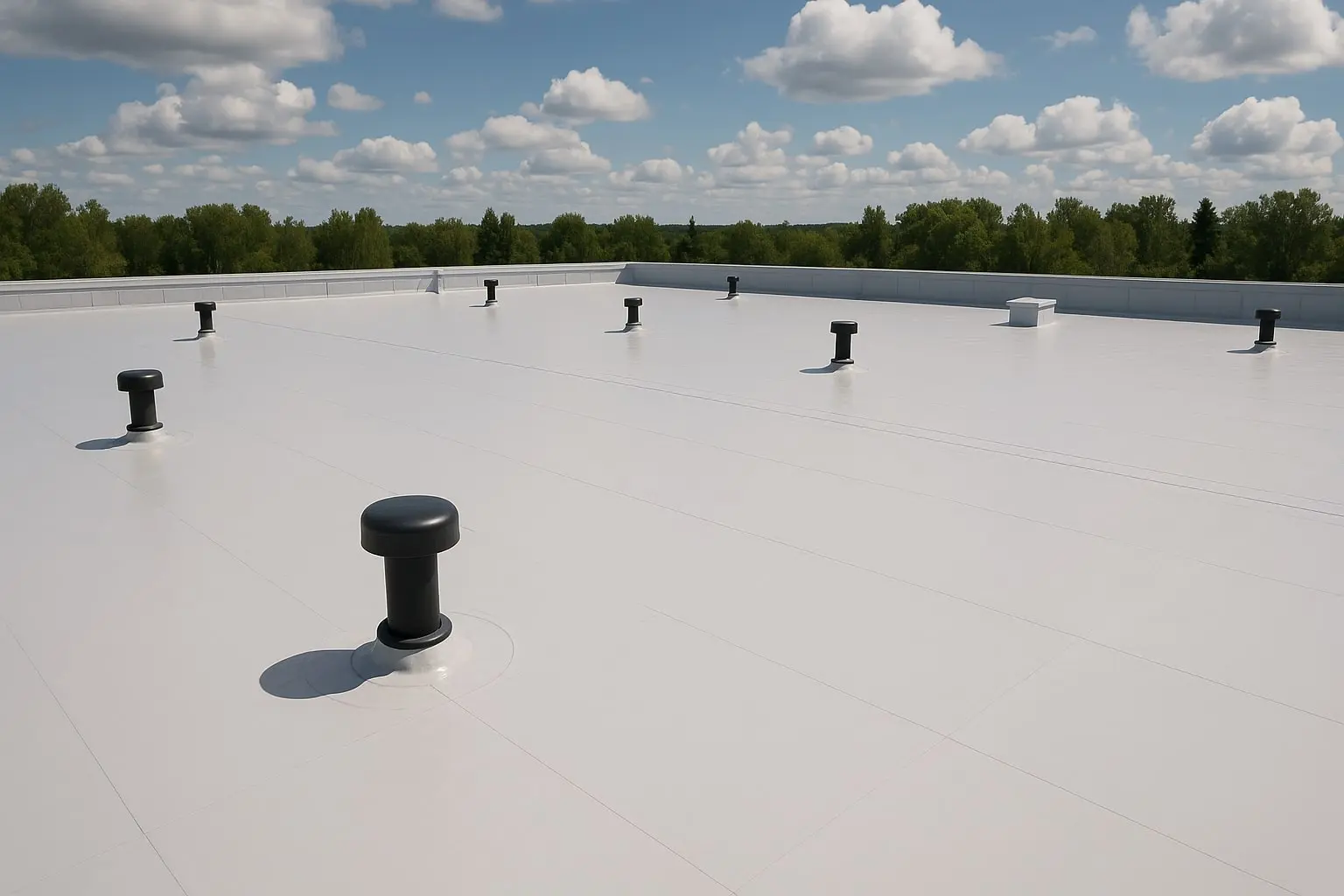 ПВХ мембрана имеет множество преимуществ перед традиционными рулонными материалами. Она обеспечивает высокую герметичность, устойчива к воздействию температуре и ультрафиолета, не требует сложного ухода. Гибкая структура полимерной мембраны позволяет выдерживать деформации основания без образования трещин. В отличие от битумных покрытий, ПВХ не подвержена гниению и сохраняет защитные свойства даже после многих лет службы.